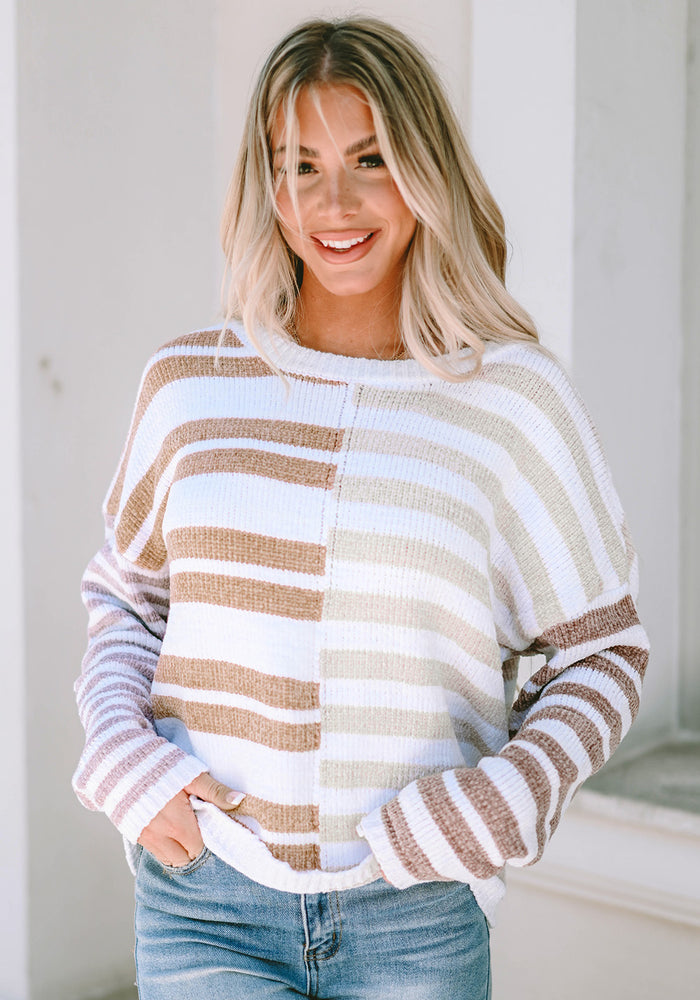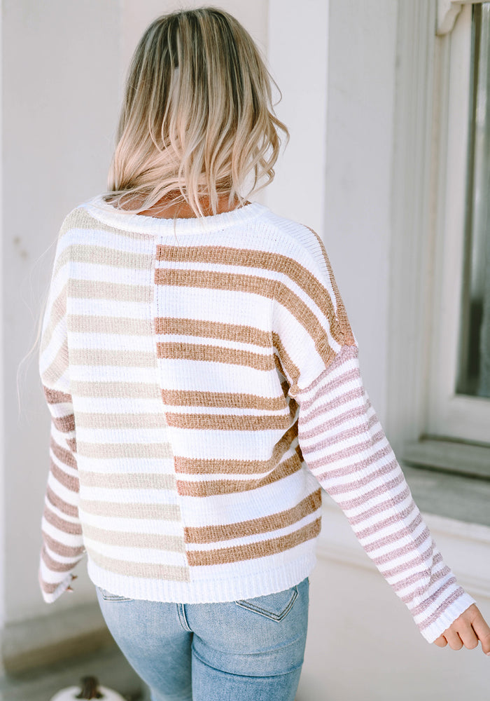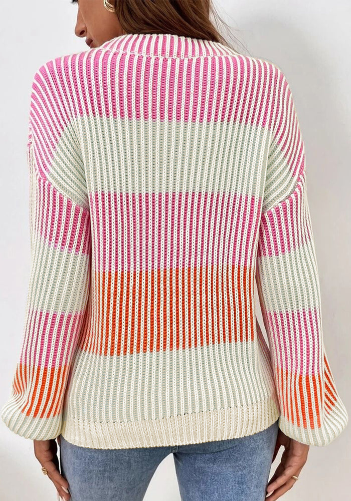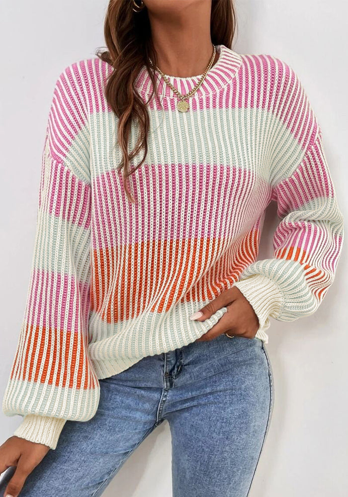Crew Neck Drop-shoulder Striped Color Block Sweater