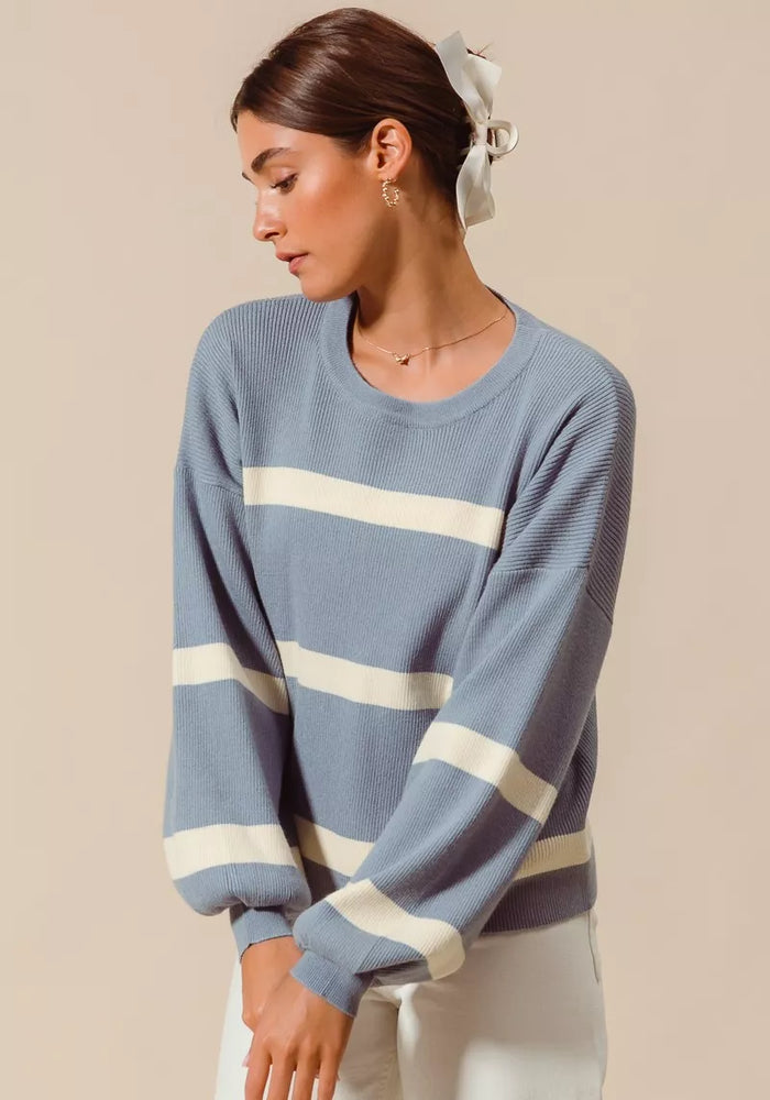 Stripe Blocked Drop Shoulder Slouchy Sweater