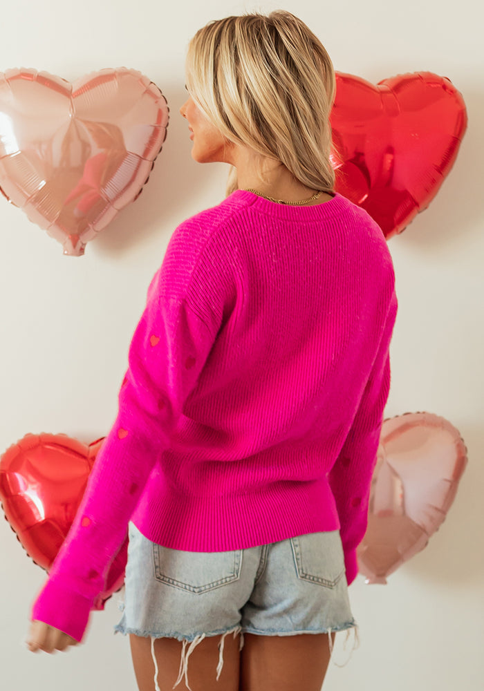 Rose Red Heart Shape Drop Shoulder Round Neck Sweater