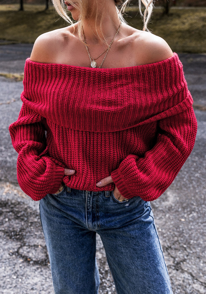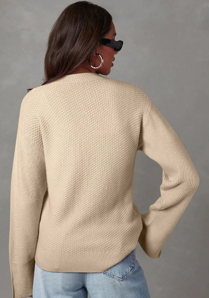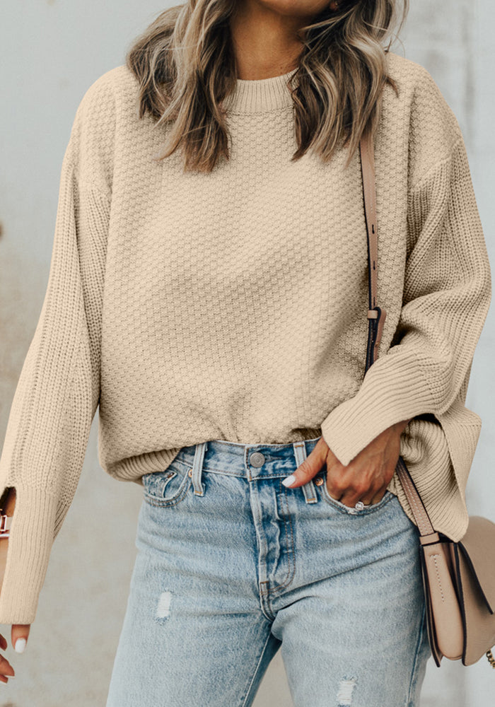 Parchment Solid Textured Knit Split Cuff Drop Shoulder Loose Sweater