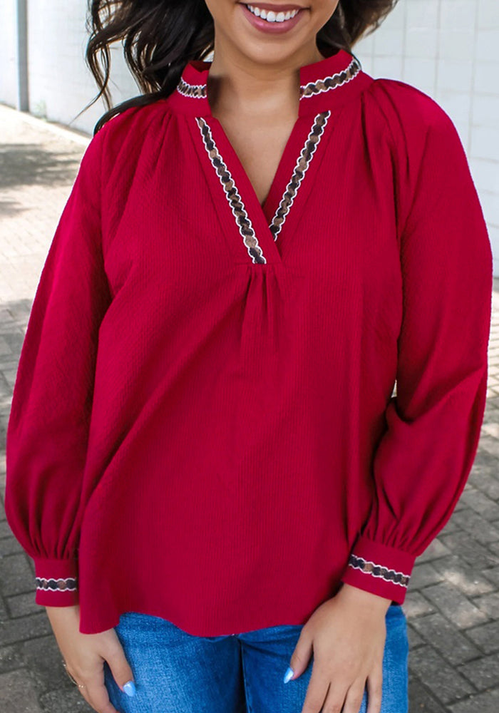 Racing Red Leopard Jacquard Print V Neck Textured Blouse