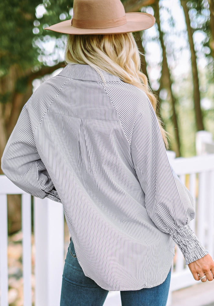 Smocked Cuffed Striped Boyfriend Shirt with Pocket
