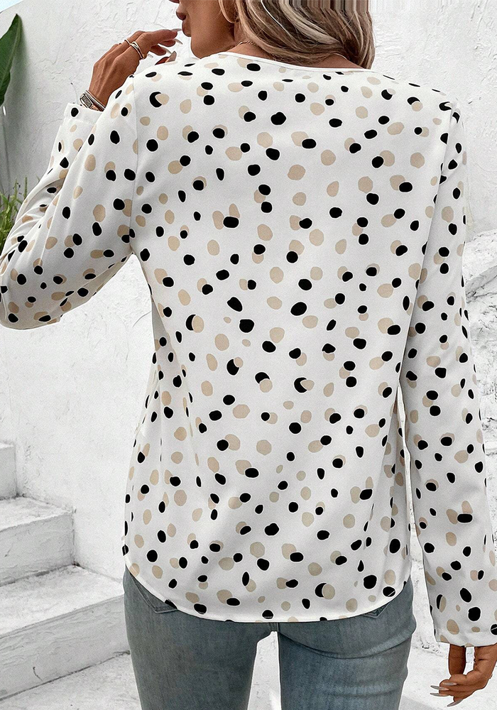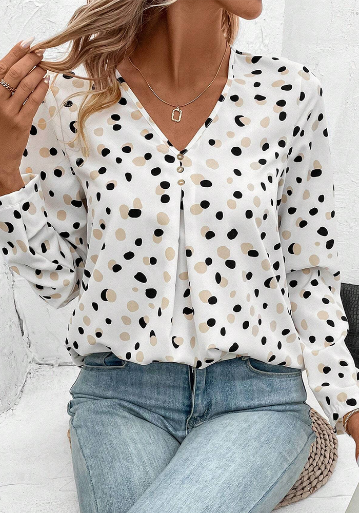 Green Abstract Print Ruffled Sleeve Buttoned V Neck Blouse