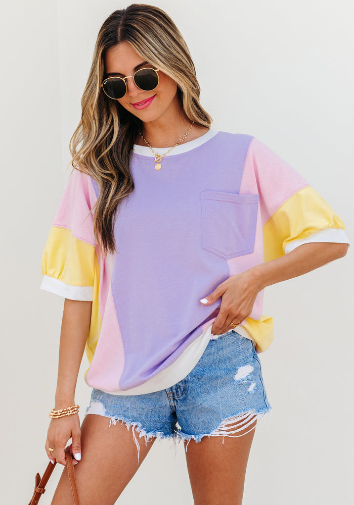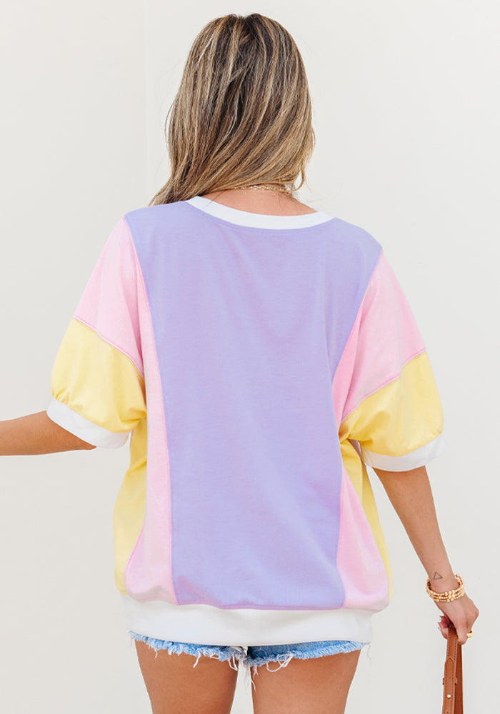 Purple Color Block Patchwork Half Sleeve Oversized T Shirt