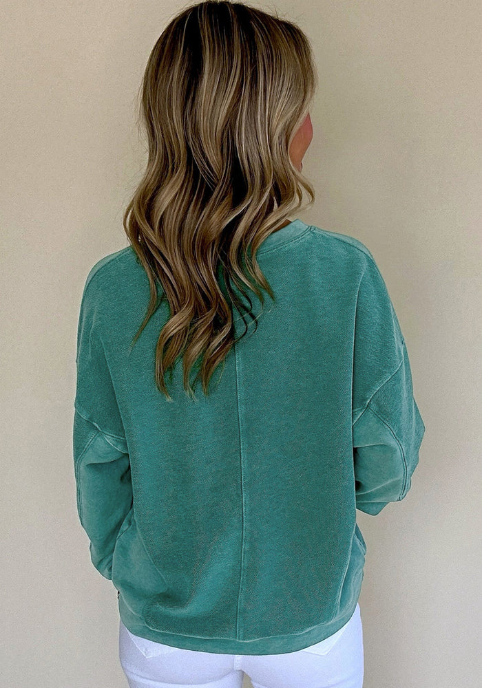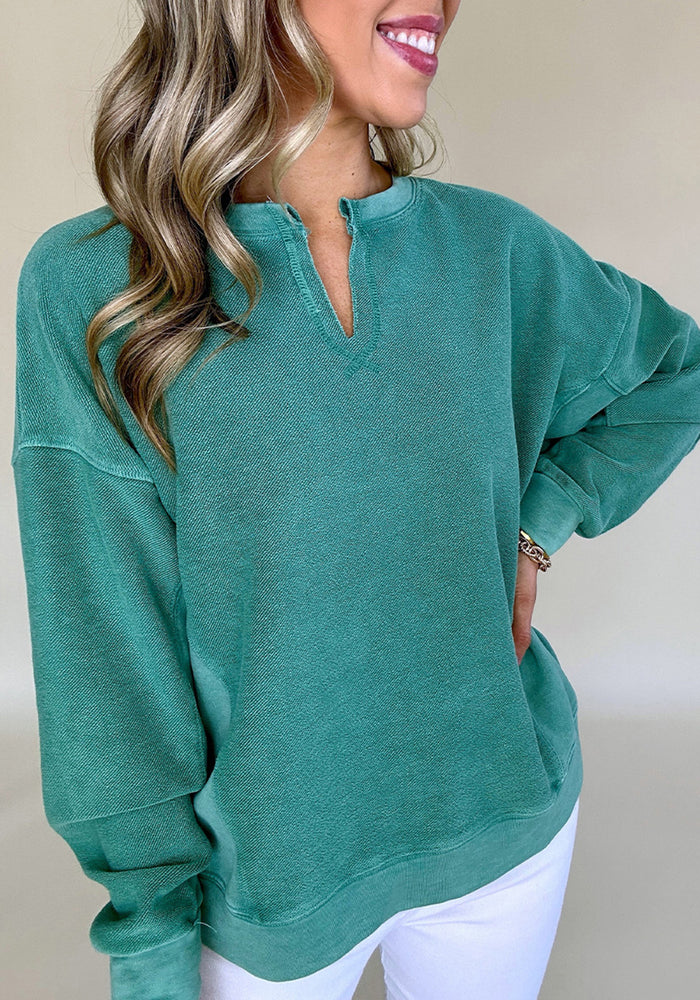 Skobeloff Solid Color Notched Neck Drop Shoulder Sweatshirt