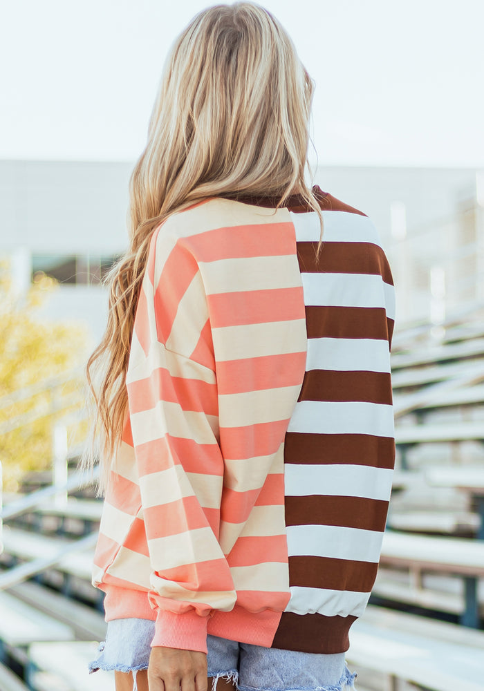 Brown Stripe Color Block Drop Shoulder Pullover Sweatshirt