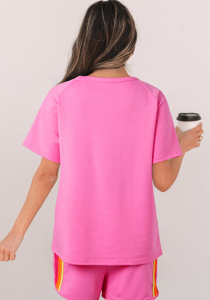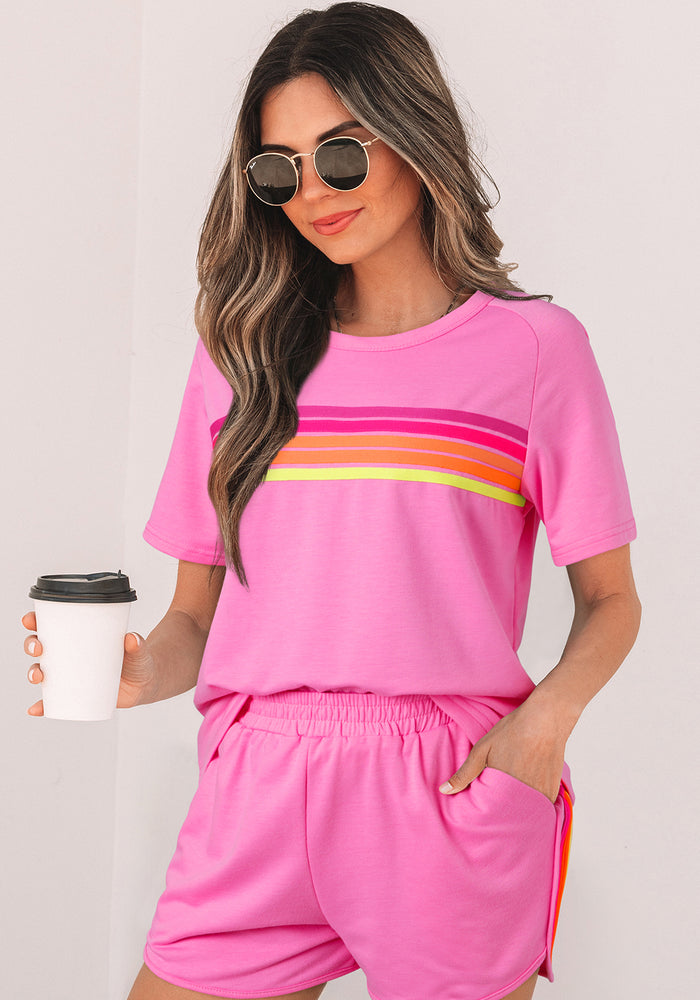 Bonbon Striped Patch Front Casual Tee