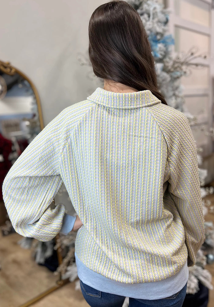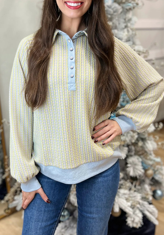 Beau Blue Button Front Jacquard Henley Sweatshirt