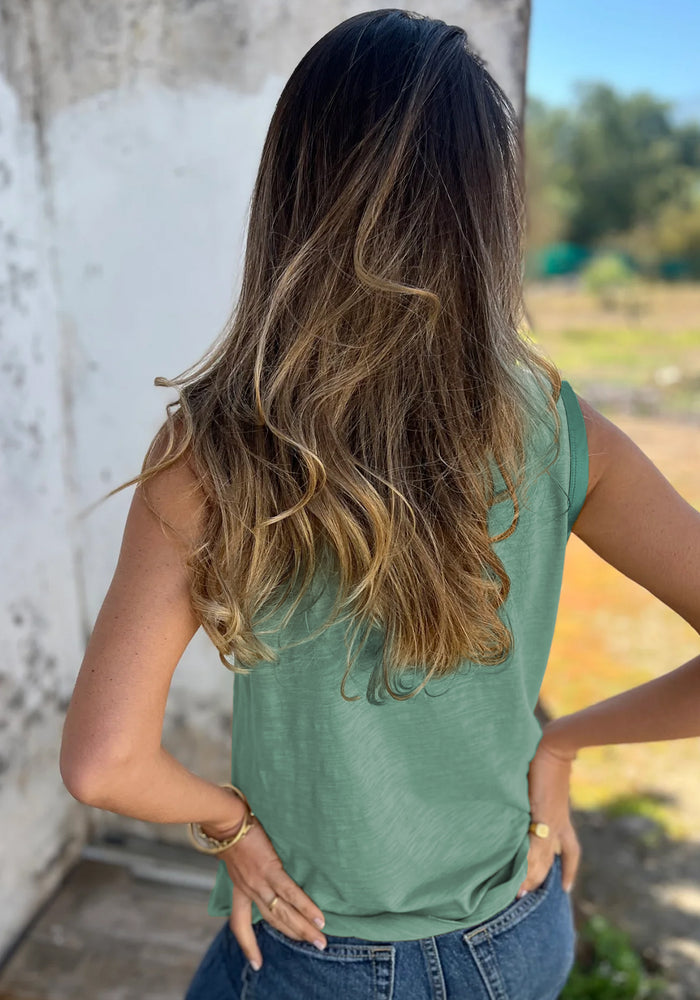 Mist Green Metallic Sheen Edge Scoop Neck Tank Top