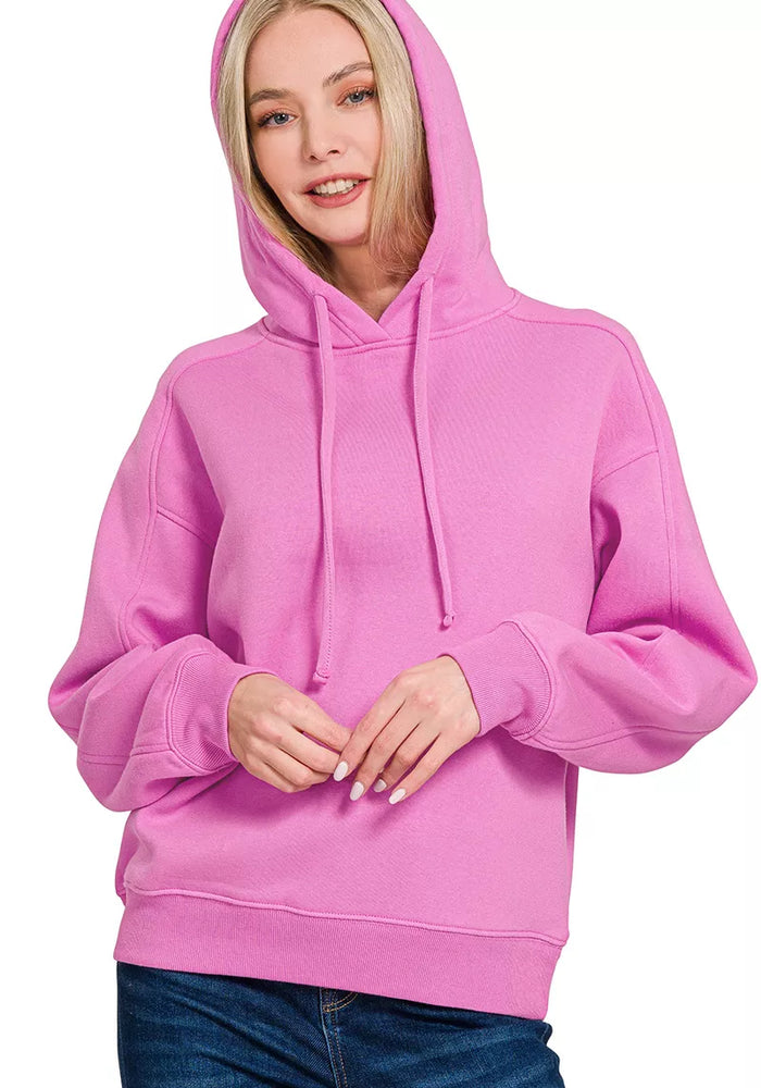 Zenana Drawstring Relaxed Fit Fleece Hoodie