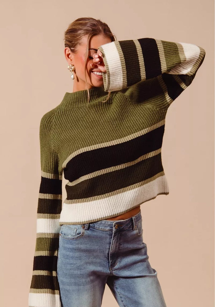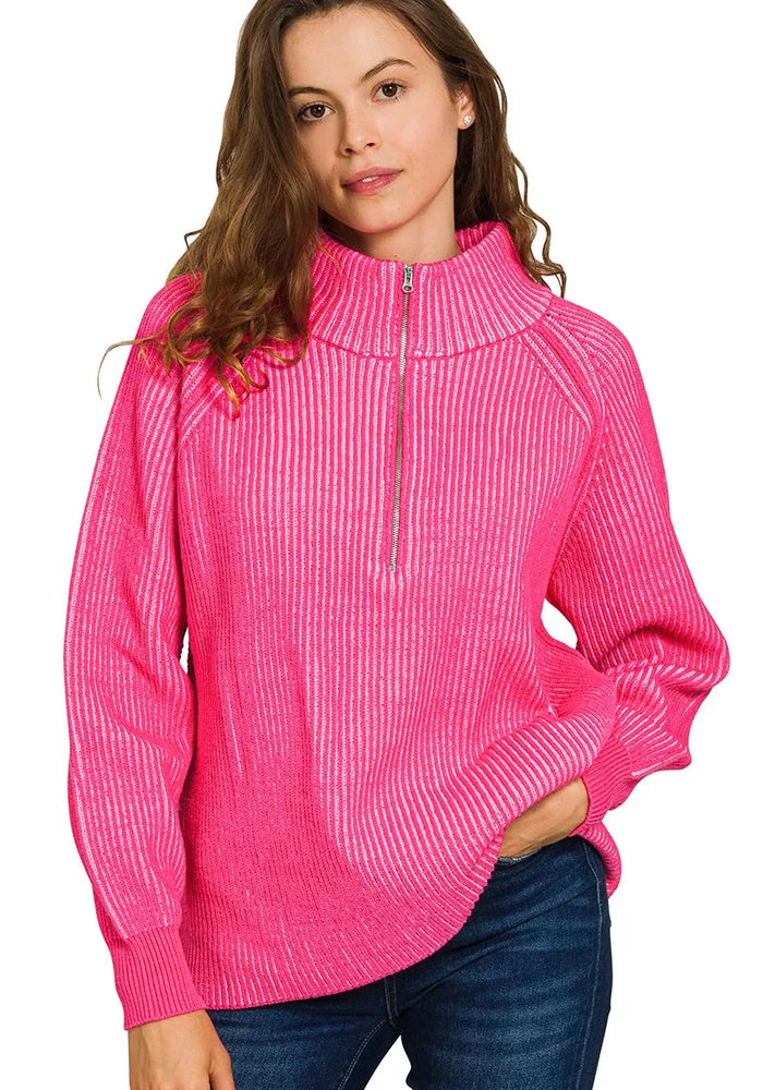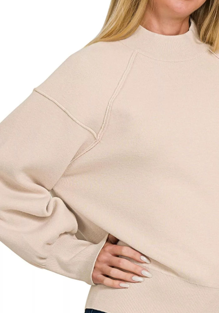 Zenana Viscose Mock Neck Exposed Seam Sweater