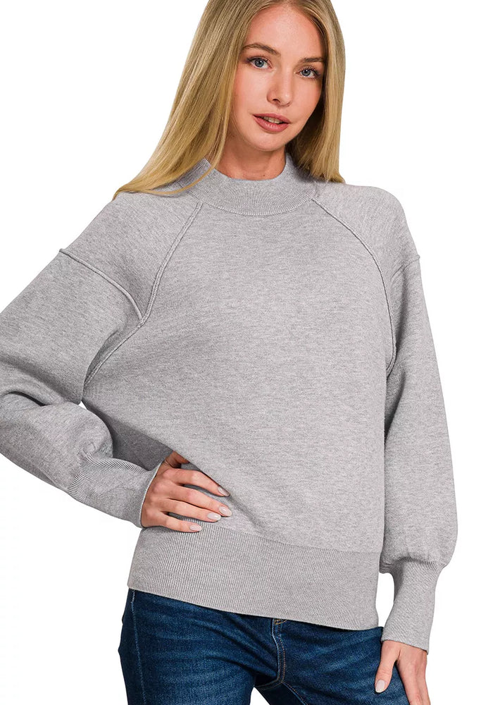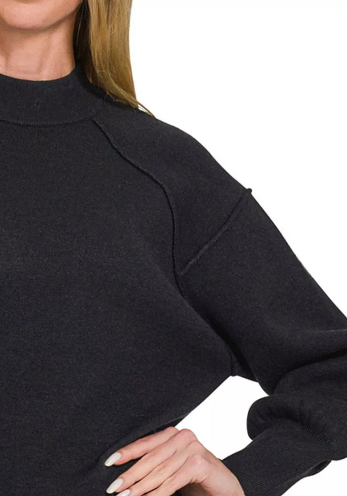 Zenana Viscose Mock Neck Exposed Seam Sweater