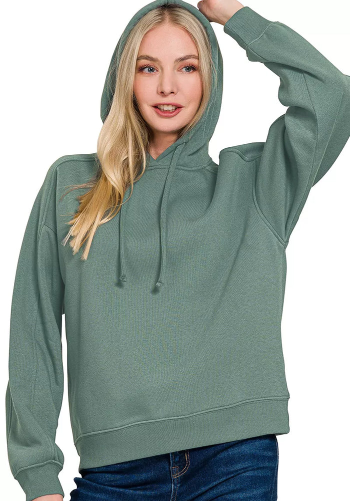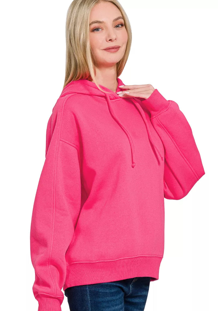 Zenana Drawstring Relaxed Fit Fleece Hoodie