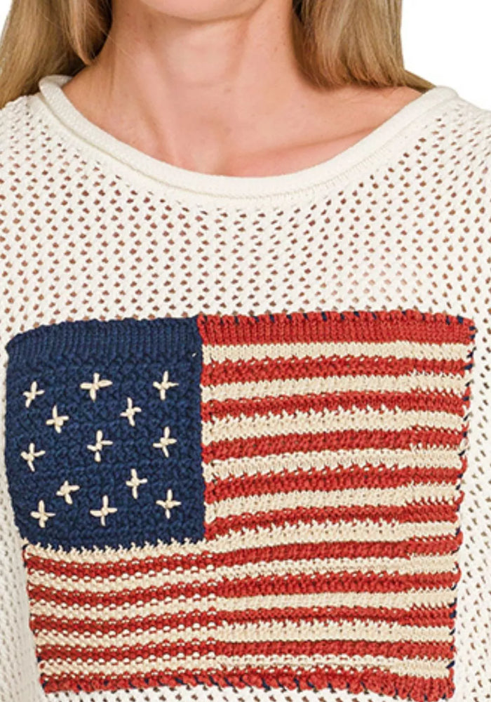 Zenana American Flag Crew Neck Sweater