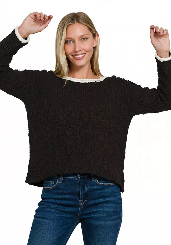 Zenana Contrast Trim Cropped Sweater