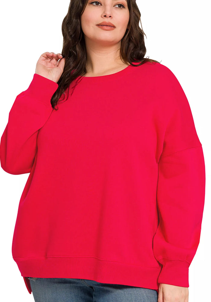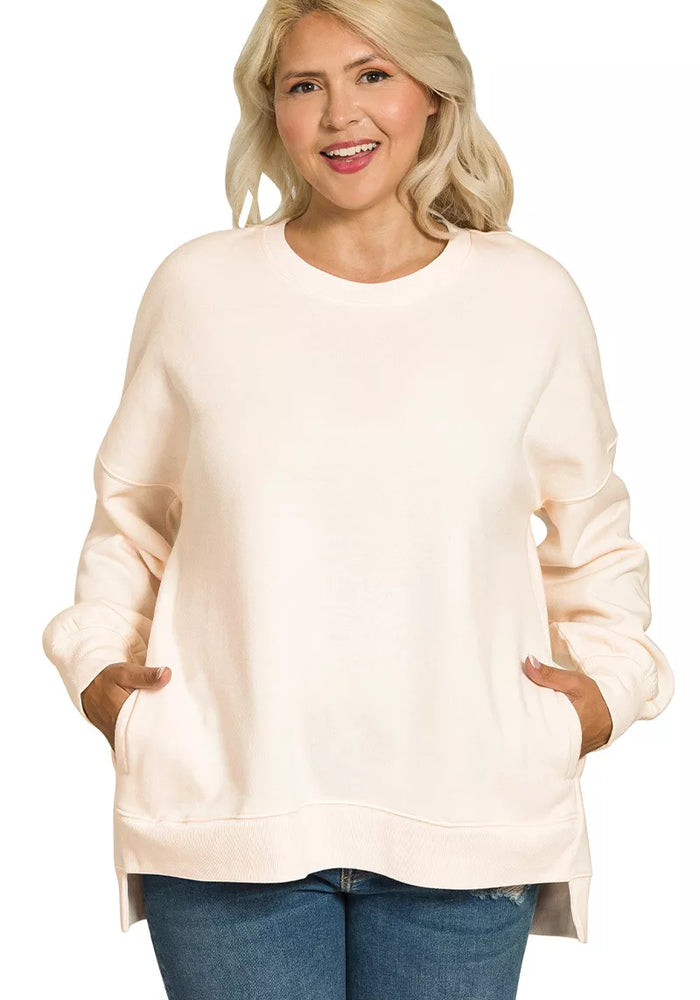 Zenana Full Size Fleece Hi-low Boyfriend Sweatshirts with Pockets Plus Size