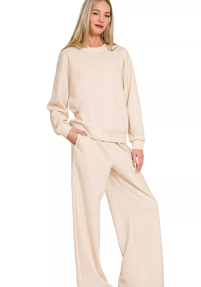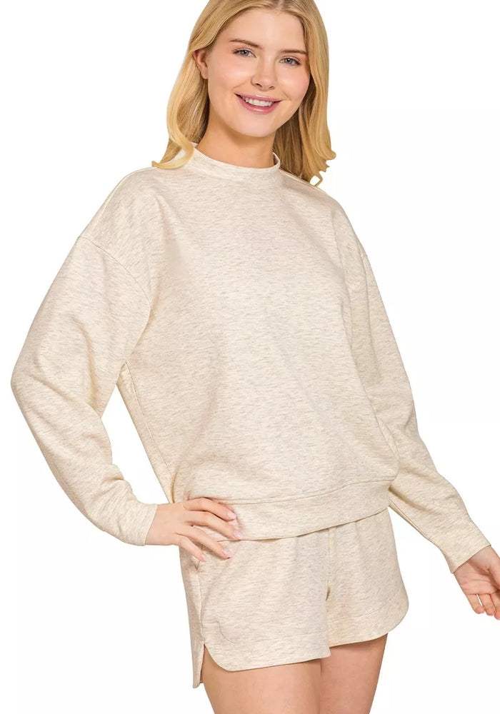Zenana Scuba Long Sleeve Sweatshirt and Shorts Set