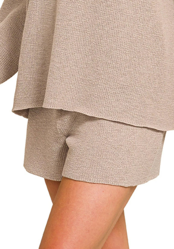 Zenana Round Neck Knit Top and Shorts Sweater Set
