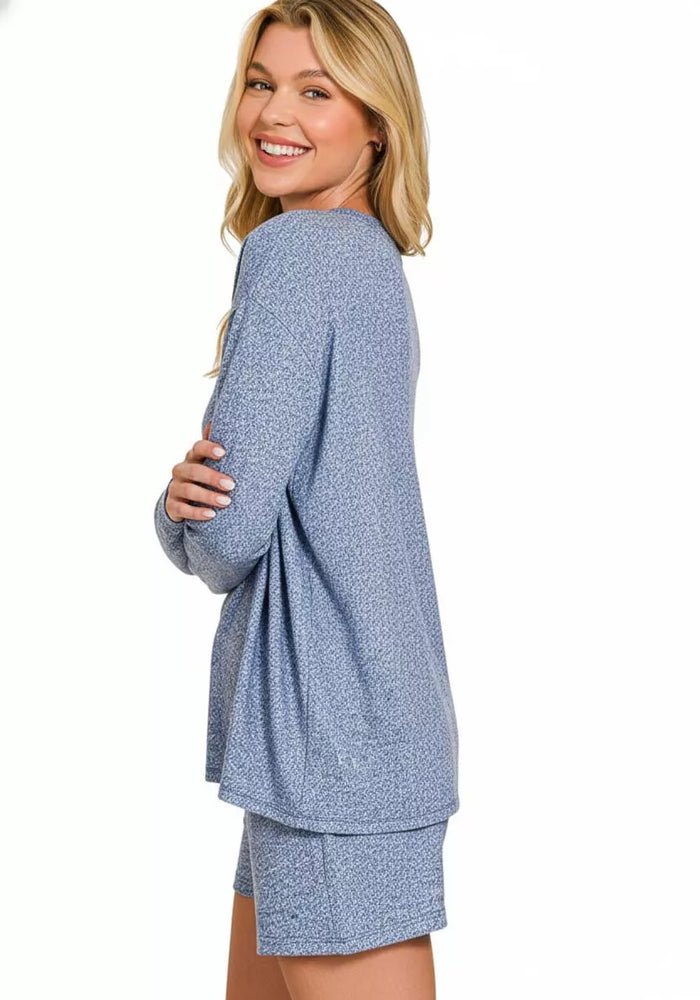 Zenana Soft Melange Long Sleeve Tee and Shorts Set