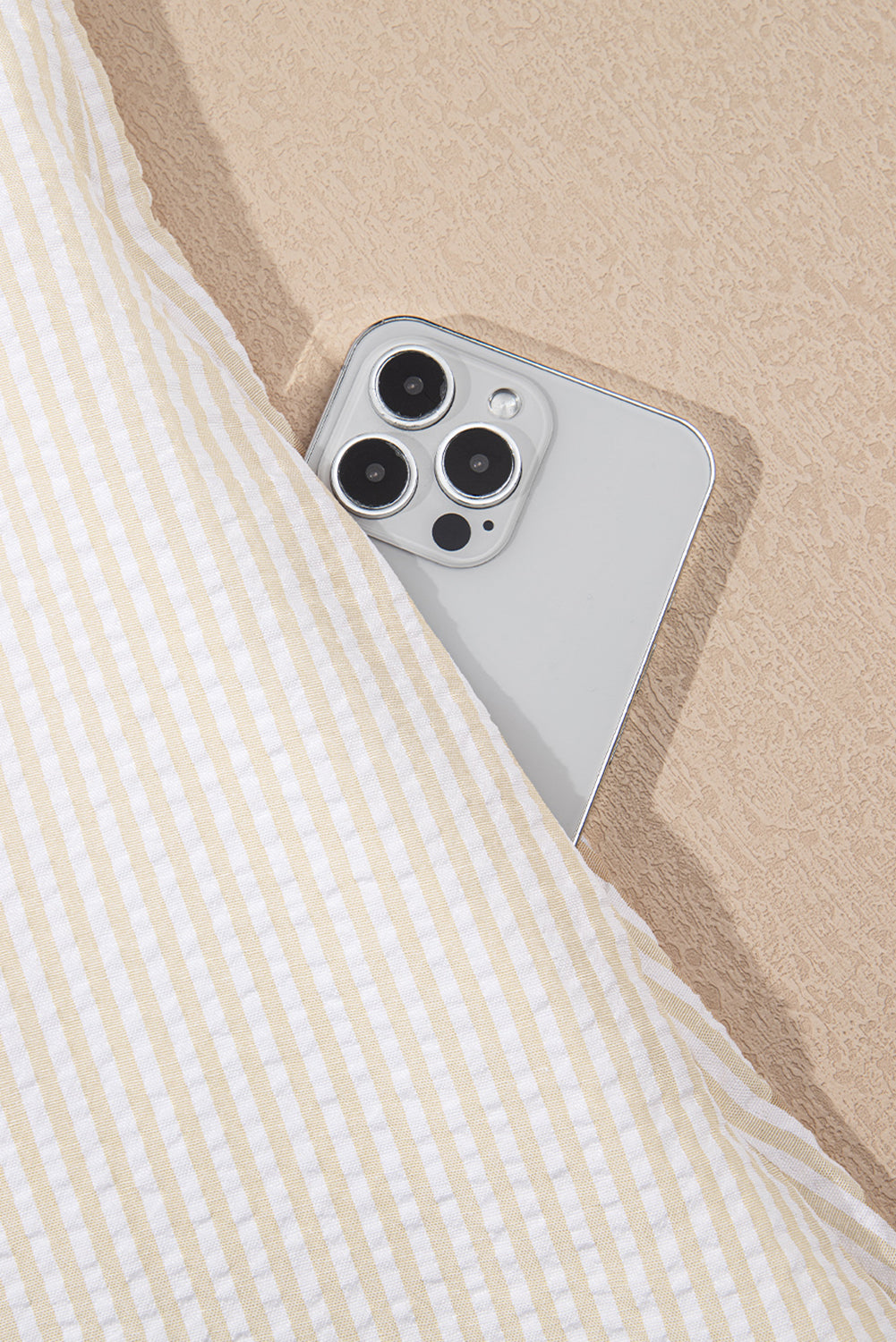 • Beige Stripe Seersucker Contrast Round Neck Puff Sleeve T Shirt Dress