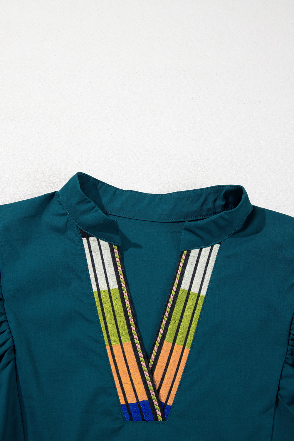 - Color-block design on the neck adds a modern and playful touch to the dress.