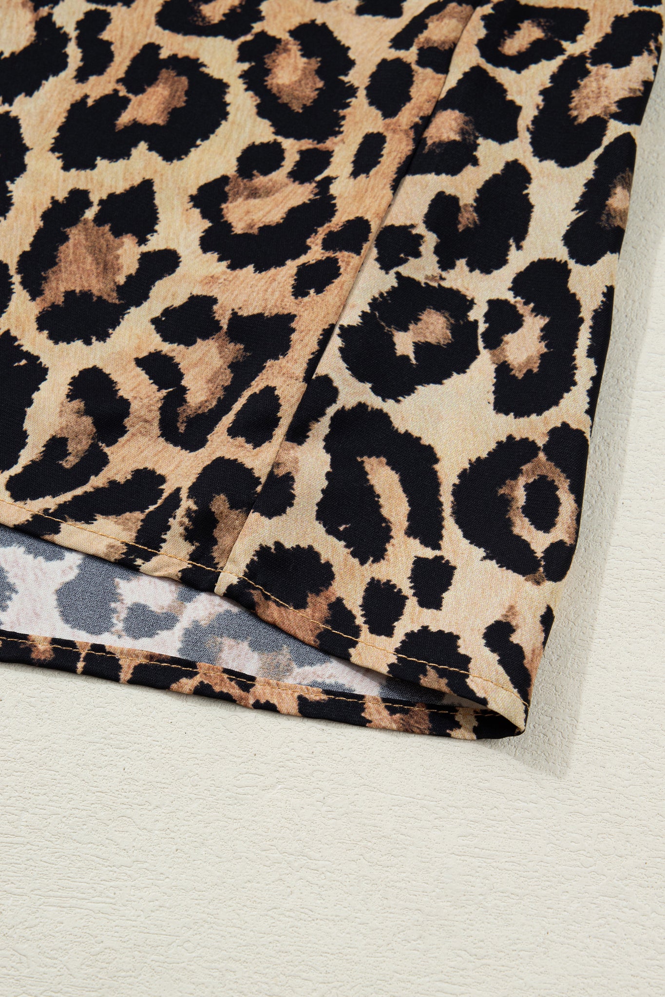 • Brown Wild Leopard Print Contrast Striped Frilled Trim Chic Shirt