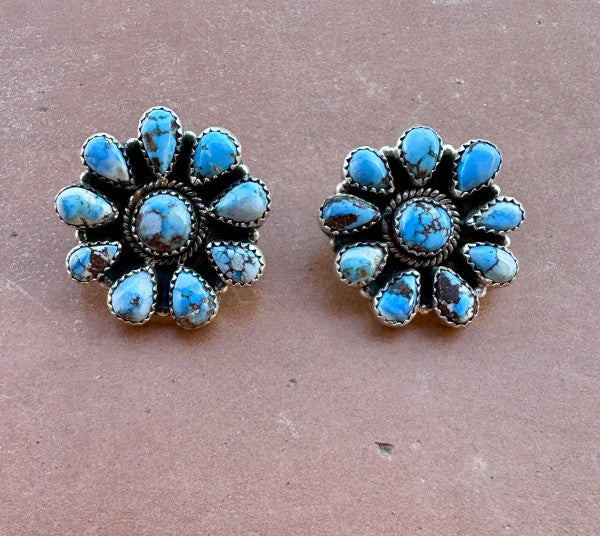 Elegant Handmade Sterling Silver Natural Golden Hills Turquoise Cluster Post Earrings.