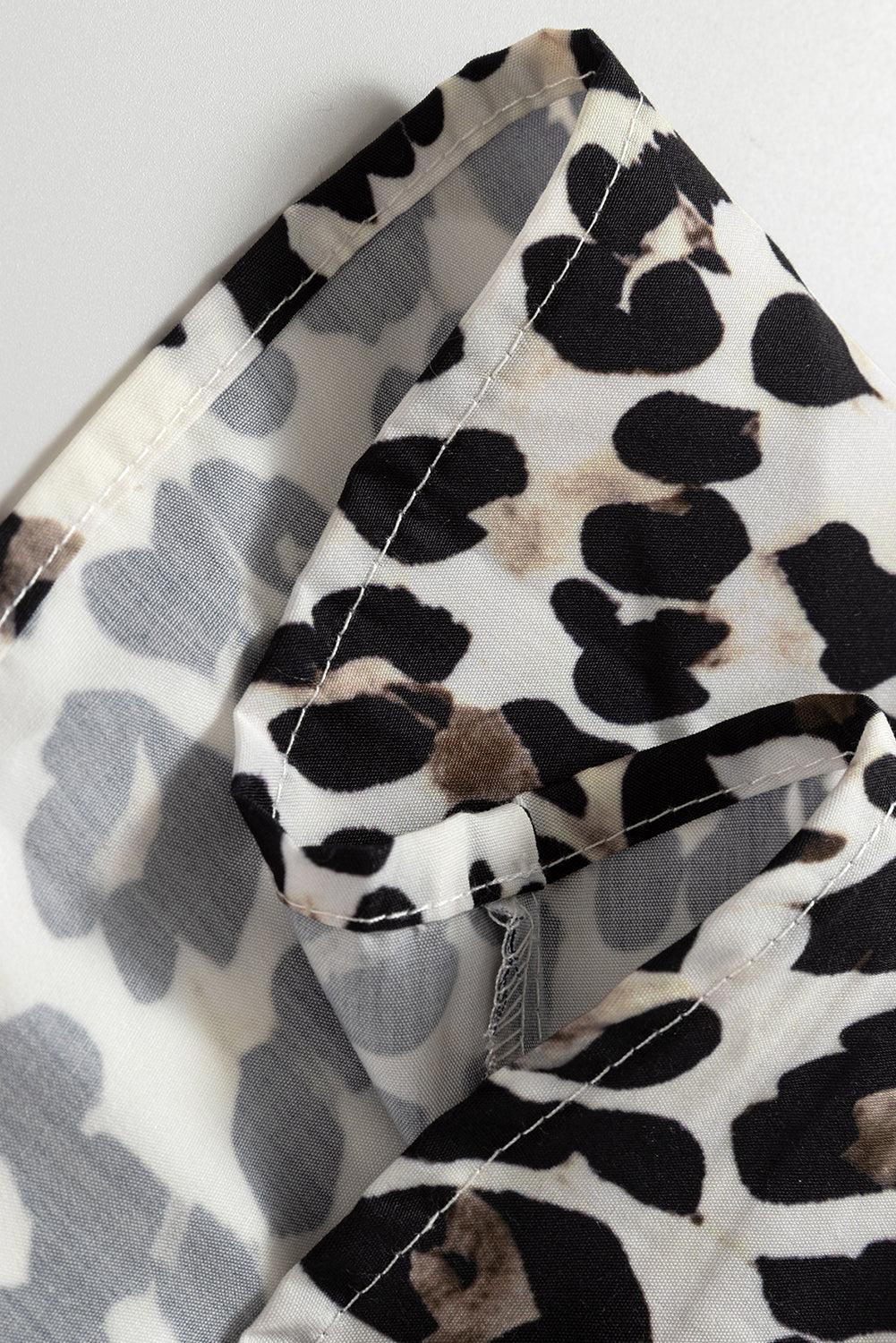 • Multicolour Button Striped Collar Leopard Print Long Sleeve Flared Dress