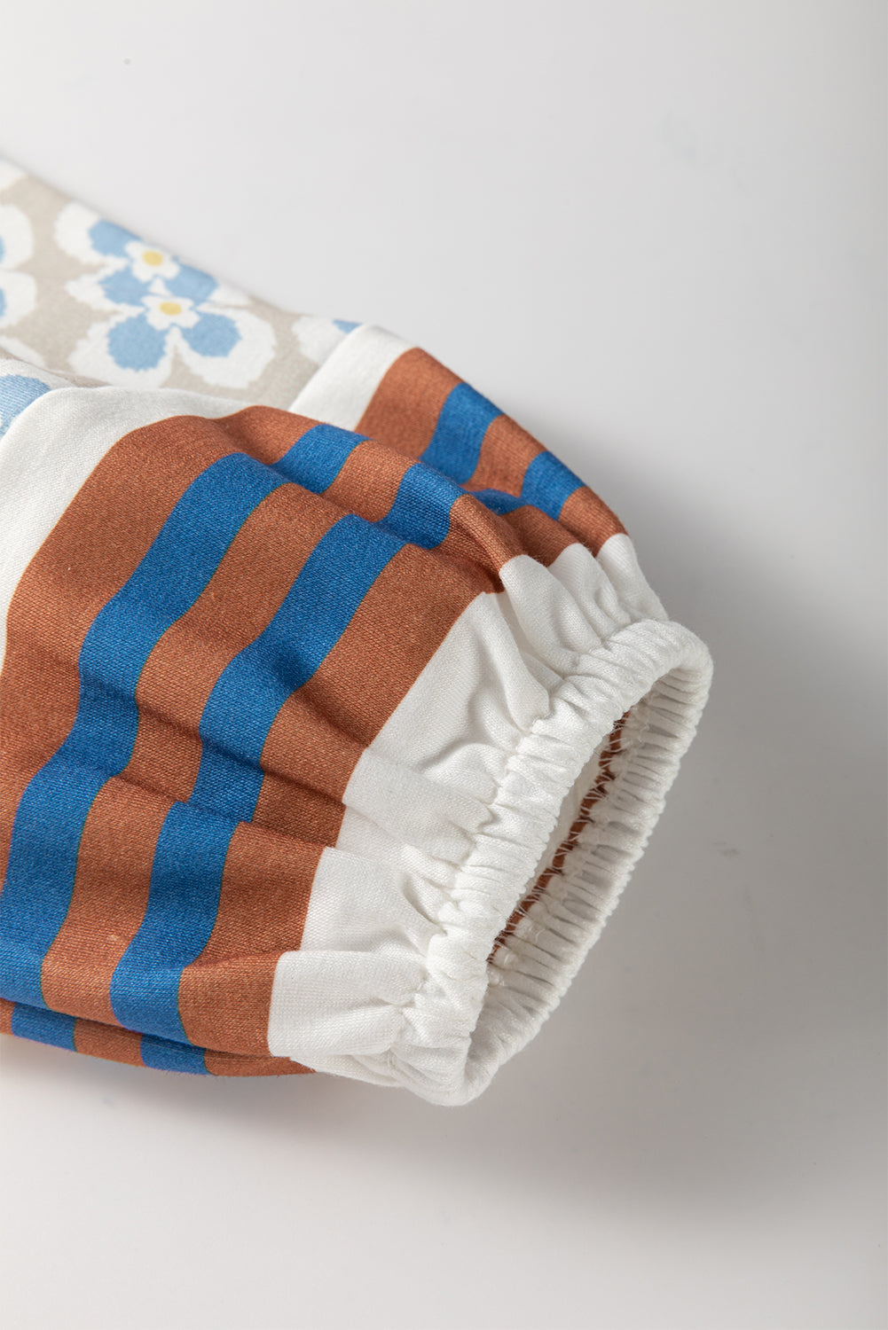 - Stand out in style with a delightful combination of classic stripes and colorful floral prints.